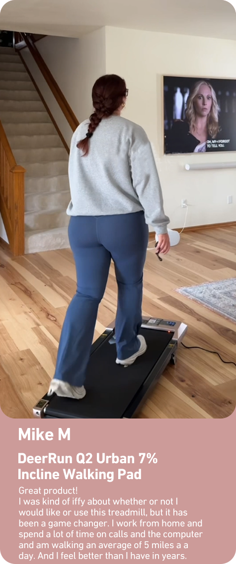 Nice product. I'm an avid walker. Got this when the weather is compromised. Not the same as walking outside, but a good substitute. Very quiet. Only negative, must set up the app to use.
