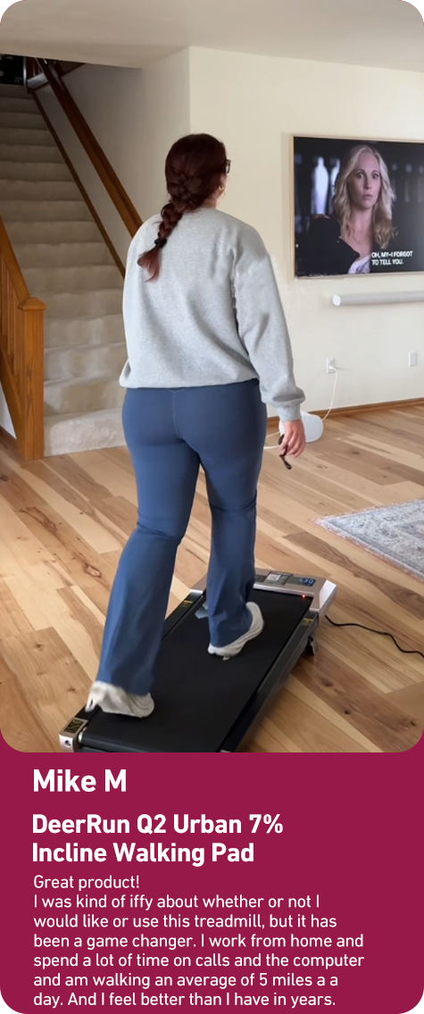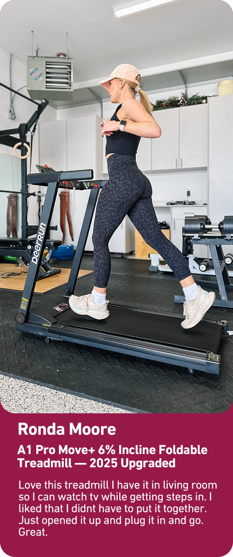 This is my second DeerRun product. I started with a walking pad and moved up to treadmill with handles. Passed the walking pad down to a family member. I am so happy with the handles and the convenience to fold up and tuck away. Looking forward to putting many miles on it.